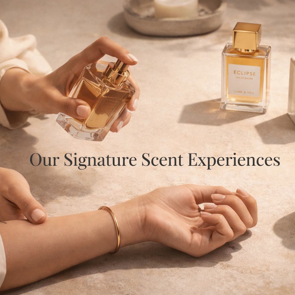At Lune & Veil, fragrance is an intimate ritual. Each experience is designed to help you discover, explore, and personalize scent — quietly, intentionally, and beautifully.